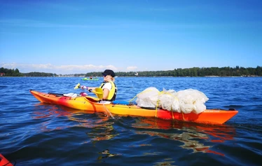 The Baltic Sea Day event at Laguuni’s Keilaniemi location starts at 17:00, and the cleanup paddle is from 17:30 to 19:30 on Thursday 29.8. Kayaks are selected on-site, with both singles and doubles available. Please register according to the number of paddlers.